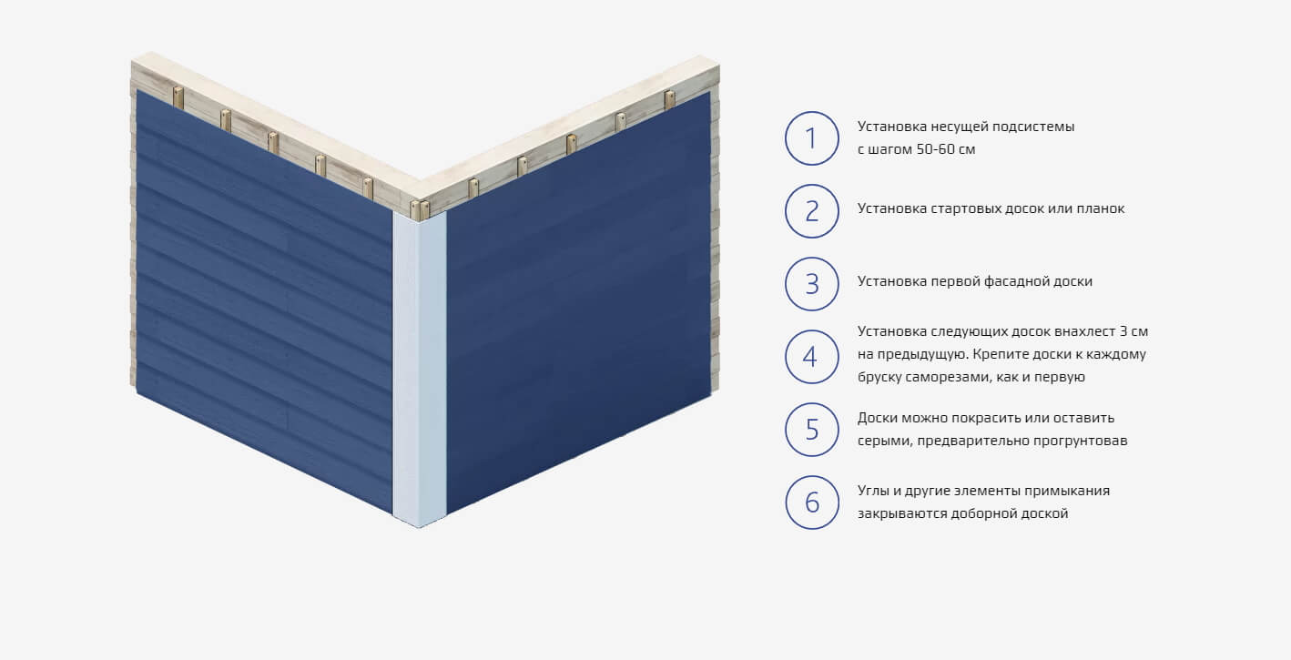 - Углы и другие элементы примыкания закрываются доборной доской.
