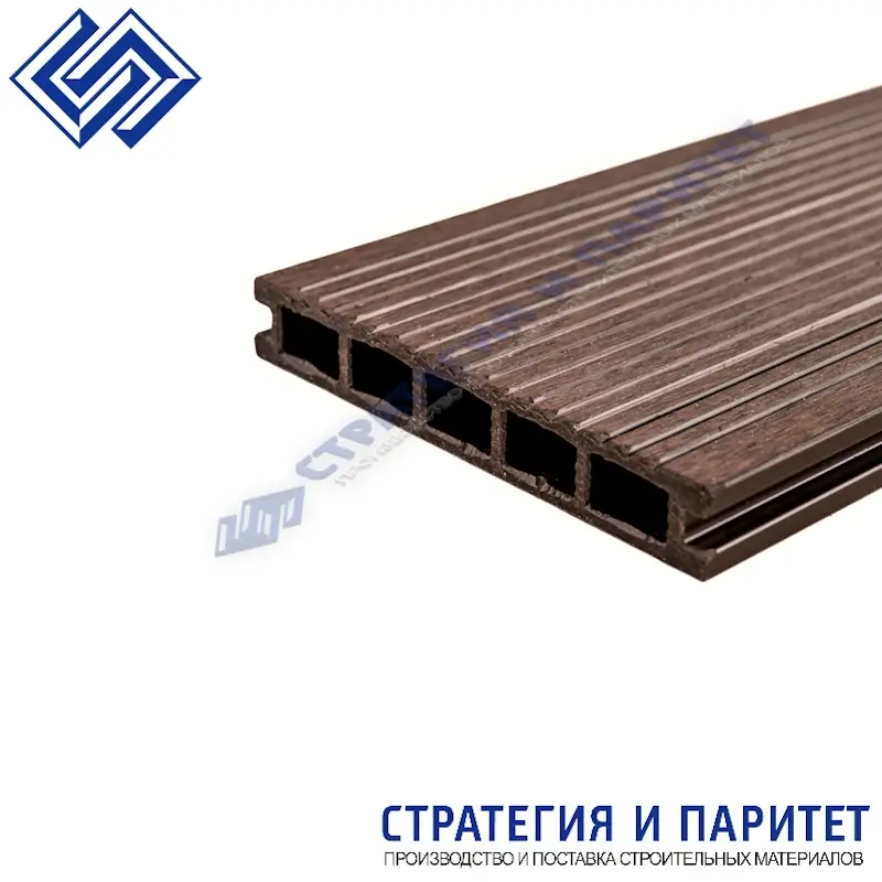Доска террасная из МПК пустотелая с пазом 3000х150х24 ШОКОЛАД (3D Тиснение под дерево + Вельвет) - современный материал из уникального по характеристикам минерально-полимерного композита (МПК) для долговечной эксплуатации на открытом воздухе (до 30 лет).